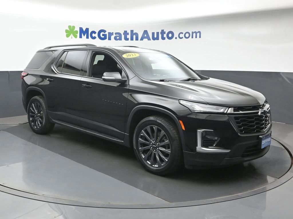 AWD. Odometer is 3748 miles below market average! CARFAX One-Owner.Certification Program Details: McGrath Certified Benefits: * Free Vehicle History Report * 106 Point Full Vehicle Condition Inspection * Like it or Exchange it! Three Day Policy 2023 Chevrolet Traverse RS 3.6L V6 SIDI VVT AWDWe're in the customer service business first, the car business second.- H.B. McGrath. Our goal is to offer our customers great vehicles at unmatched prices, but the car business isn't just about the product, it's about the people. Welcome to McGrath, your destination for award-winning automotive excellence! Wwe were voted CBJ's 2024 #1 Coolest Place to Work and winner of 2024 Best of the Best Auto Dealer, Auto Service, and Fleet Dealer. We’re proud to deliver unmatched quality and service. With over 11,000 5-star Google reviews, our customers’ trust and satisfaction drive everything we do. Whether you’re buying, servicing, or building your fleet, experience why McGrath is the top choice for all your automotive needs! If we aren't making our customers happy, we aren't in business. It's as simple as that, and we intend to deliver on the promise: Get More with McGrath.Prices may change at any time and are subject to availability and prior sale. Taxes, title, license fees, and a $180 documentation fee are not included. Pricing reflects all applicable rebates and incentives assigned to the dealer. Example payments are estimates; actual terms vary based on credit approval. APR and payment estimates apply to qualified buyers, not all buyers qualify for advertised rates. Factory cash incentives may not be combined with promotional APR. Fuel economy ratings and driving range figures are based on EPA estimates for new vehicles, and actual mileage and range may vary. Some in-stock vehicles may include a $1,295 Clear Guard Protection package By submitting your phone number online, you consent to occasional SMS or voice calls about our products and promotions; standard messaging rates may apply. Consult dealer for offer eligibility and other details. Factory MSRP is not the final advertised/asking price of the vehicle. Fuel economy figures are official EPA estimates and clearly labeled as such.