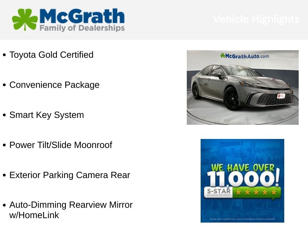Discover the 2025 Toyota Camry SE - a refined and efficient sedan that seamlessly blends style, technology, and performance. With its striking Gray exterior and a host of premium features, this Camry SE is the perfect companion for your daily commute and weekend adventures.
