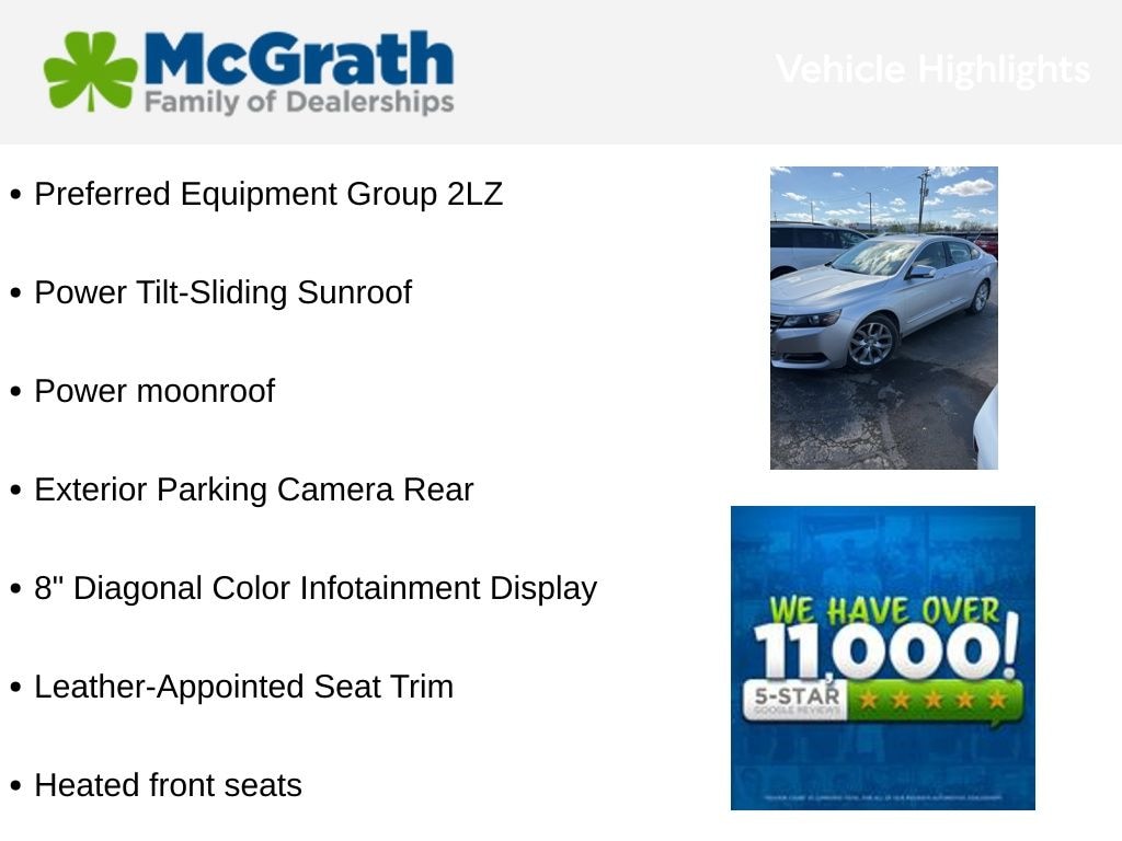 This Impala LTZ 2LZ is the perfect balance of style, technology, and driving dynamics. Experience the difference for yourself and schedule a test drive today. We're confident you'll be impressed by the quality, features, and value this vehicle has to offer.