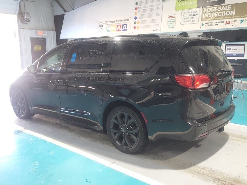 The S Appearance Package adds a touch of style with its black badging, black day light opening moldings, and black Chrysler grille wing badge, giving the Pacifica a bold and distinctive look.