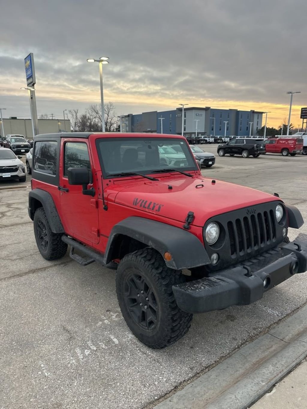 Discover the Rugged Charm of the 2017 Jeep Wrangler Willys WheelerThis 2017 Jeep Wrangler Willys Wheeler is a true off-road icon, blending timeless style with uncompromising capability. With its distinctive Willys Wheeler package, this Wrangler is ready to take you on unforgettable adventures, whether you're conquering the trails or navigating the city streets.- Clean Carfax- Quick Order Package 24K Willys Wheeler- Dual Top Group- LED Lighting Group- Trailer Tow GroupPowered by a robust 3.6L V6 engine and equipped with a 5-speed automatic transmission, this Wrangler delivers the perfect balance of power and control. Boasting 4-wheel drive, you'll have the confidence to tackle any terrain, while the Willys Wheeler package adds a unique flair with its distinct grille, hood decal, and rock rails.Climb inside and you'll be greeted by a host of premium features, including Uconnect voice command with Bluetooth, a leather-wrapped steering wheel, and a premium sound system. The dual-top configuration, with both a black 3-piece hard top and a premium black sunrider soft top, allows you to customize your driving experience to suit your mood and the weather.Whether you're an avid off-roader or simply seeking a versatile and stylish SUV, this 2017 Jeep Wrangler Willys Wheeler is an exceptional choice. With its impressive capabilities, distinctive styling, and well-appointed interior, it's the perfect companion for your next adventure.We invite you to experience the thrill of the Wrangler Willys Wheeler for yourself. Visit our showroom today and let our knowledgeable team guide you through the features and benefits of this remarkable vehicle. We're confident you'll be captivated by its rugged charm and eager to make it your own.Prices may change at any time and are subject to availability and prior sale. Taxes, title, license fees, and a $180 documentation fee are not included. Pricing reflects all applicable rebates and incentives assigned to the dealer. Example payments are estimates; actual terms vary based on credit approval. APR and payment estimates apply to qualified buyers, not all buyers qualify for advertised rates. Factory cash incentives may not be combined with promotional APR. Fuel economy ratings and driving range figures are based on EPA estimates for new vehicles, and actual mileage and range may vary. Some in-stock vehicles may include a $1,295 Clear Guard Protection package By submitting your phone number online, you consent to occasional SMS or voice calls about our products and promotions; standard messaging rates may apply. Consult dealer for offer eligibility and other details. Factory MSRP is not the final advertised/asking price of the vehicle. Fuel economy figures are EPA estimates.